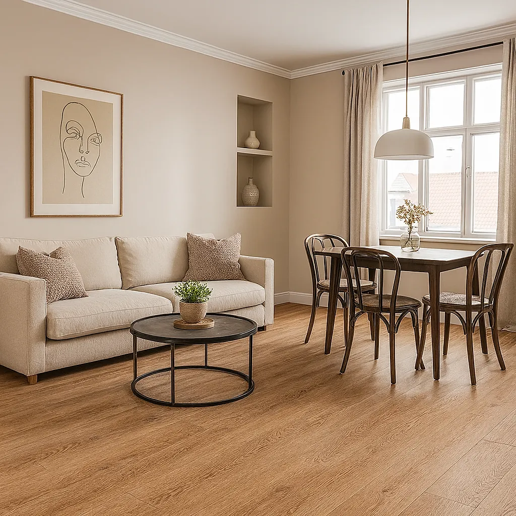 ❌ Outdated ceramic tiles and limate floors – cold & uninviting